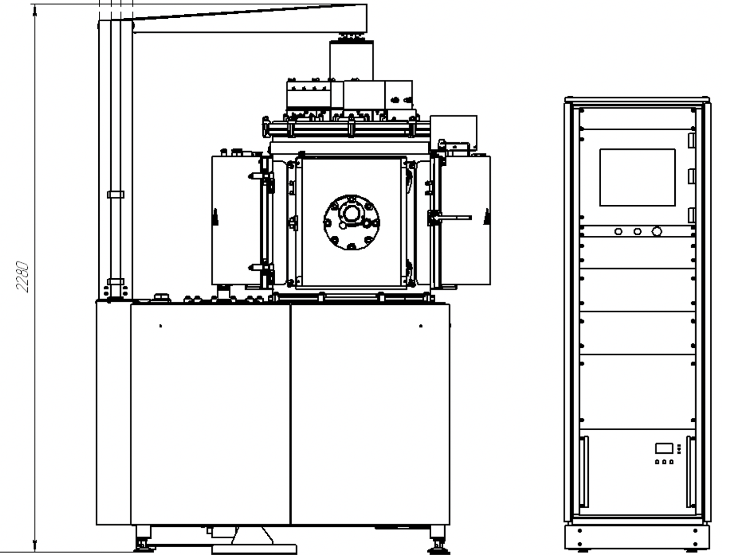 Два комплекта блоков питания магнетрона и ионного источника и блок подачи смещения на барабан подложкодержатель в предельном варианте комплектации.